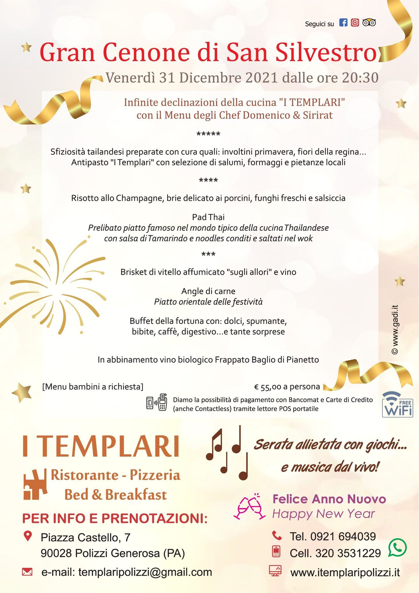Menu Gran Cenone di San Silvestro Creato: 14 Dicembre 2021 | Ultima modifica: 14 Dicembre 2021 Scritto da Super User Categoria: Uncategorised Ricordiamo ai nostri clienti che per accedere alla nostra struttura ricettiva bisogna esibire il GREEN PASS